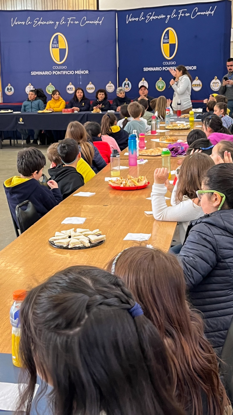 Como culminación de esta hermosa iniciativa, los estudiantes de 3° Básico y sus familias organizaron un desayuno en honor a los auxiliares del Colegio, en señal de agradecimiento por su imprescindible labor diaria. Este evento no solo representó un acto de gratitud, sino que también sirvió como un compromiso para los estudiantes con la limpieza y el cuidado del Semiponti. Durante el desayuno, los apoderados entregaron diplomas de agradecimiento y galletas con mensajes de reconocimiento, como “Gracias por tu labor”, “Gracias por lo importante que eres”, entre otros.
