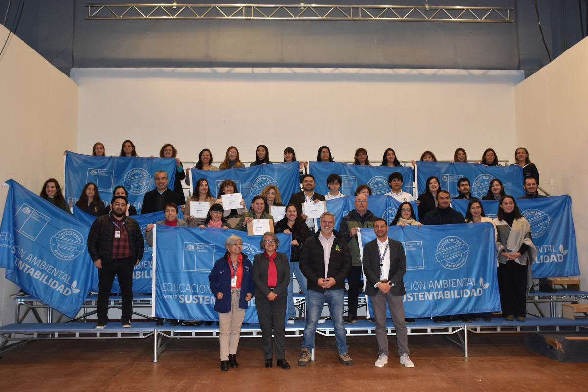 La ceremonia de certificación se realizó en el Aula Magna de la Universidad de Santiago de Chile (USACH) y reunió a más de 400 asistentes, entre ellos autoridades regionales, representantes del Ministerio del Medio Ambiente, Educación, CONAF, JUNJI, Integra y diversas municipalidades, junto a directivos, docentes y estudiantes de los establecimientos certificados.