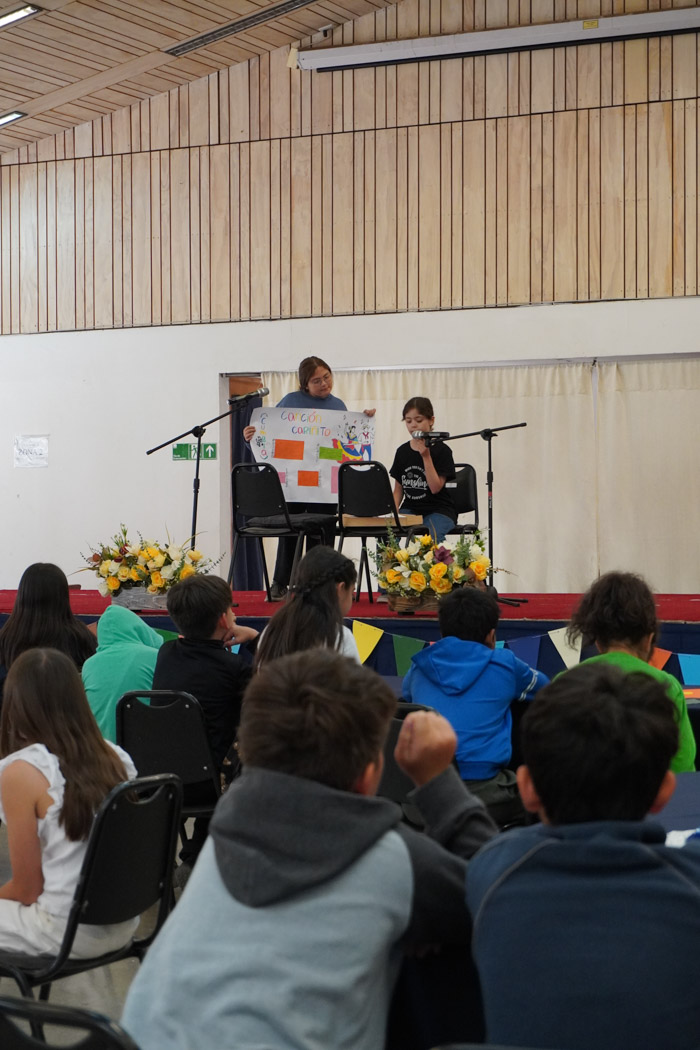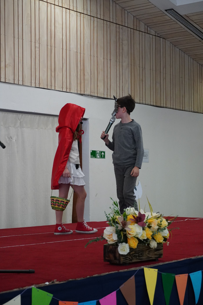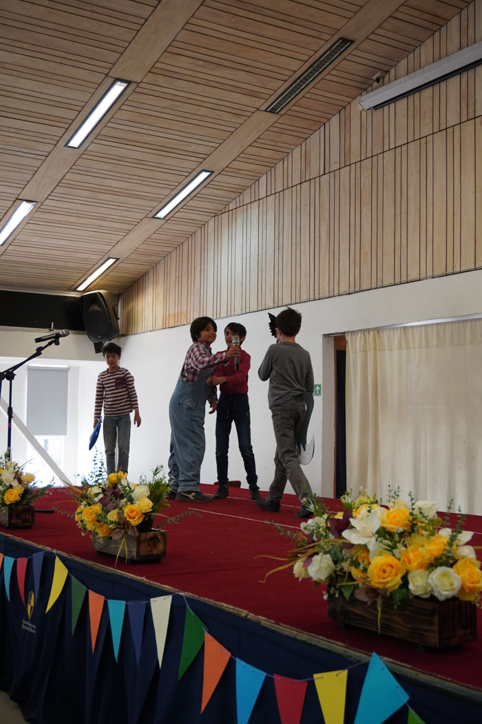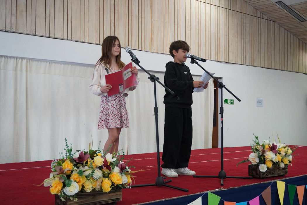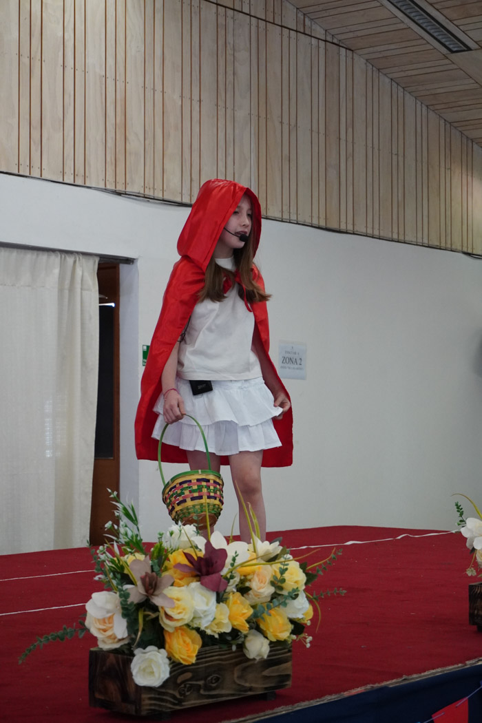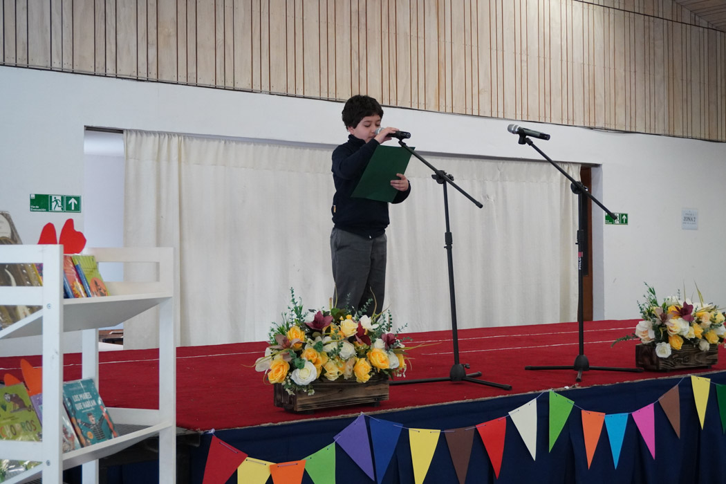 Guiados por los presentadores de la ceremonia, los estudiantes vivieron un programa lleno de poesía, cuentos tradicionales, personajes literarios y relatos chilenos, incluyendo: