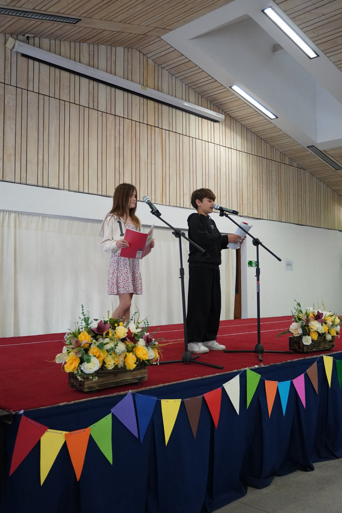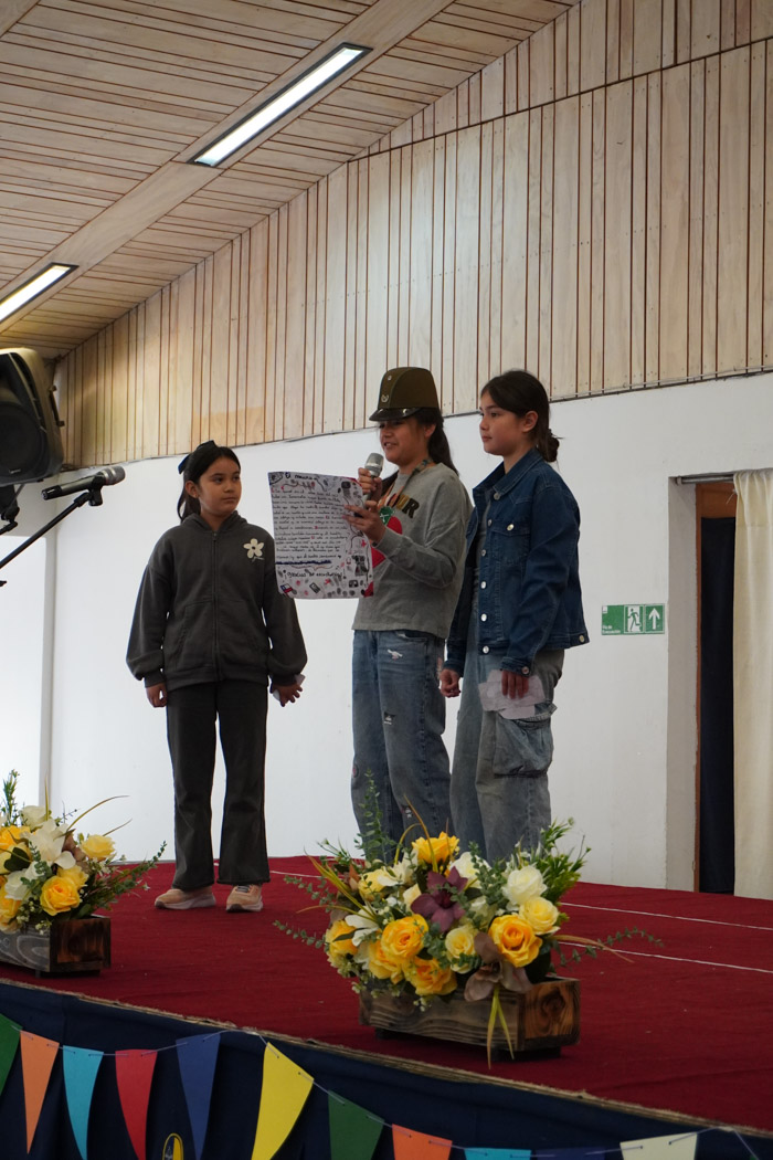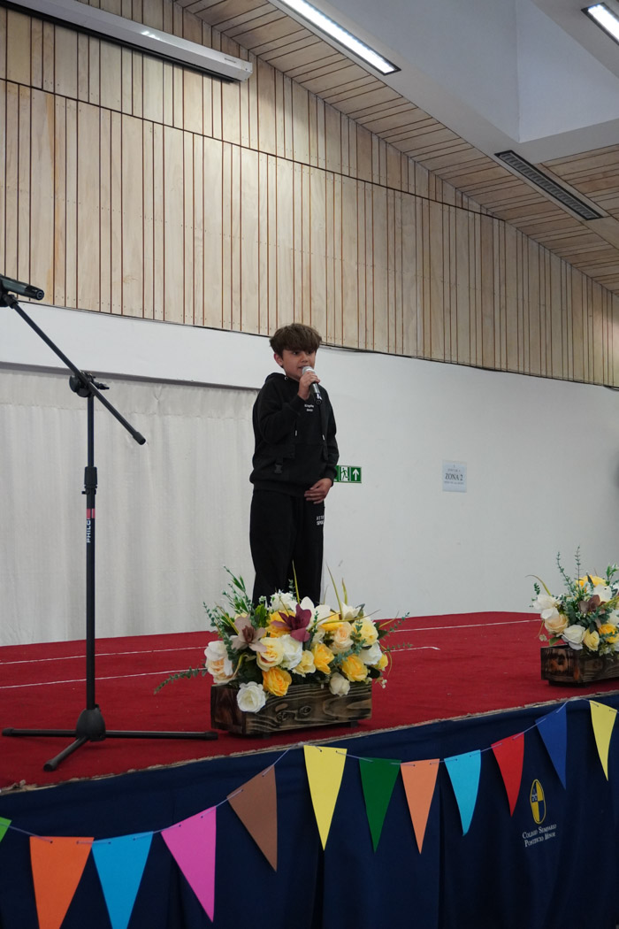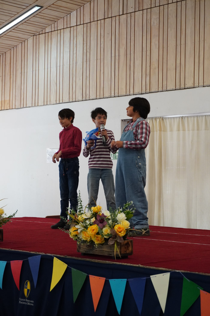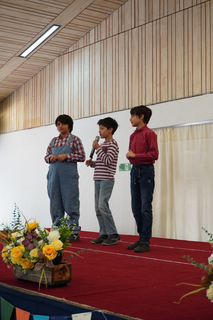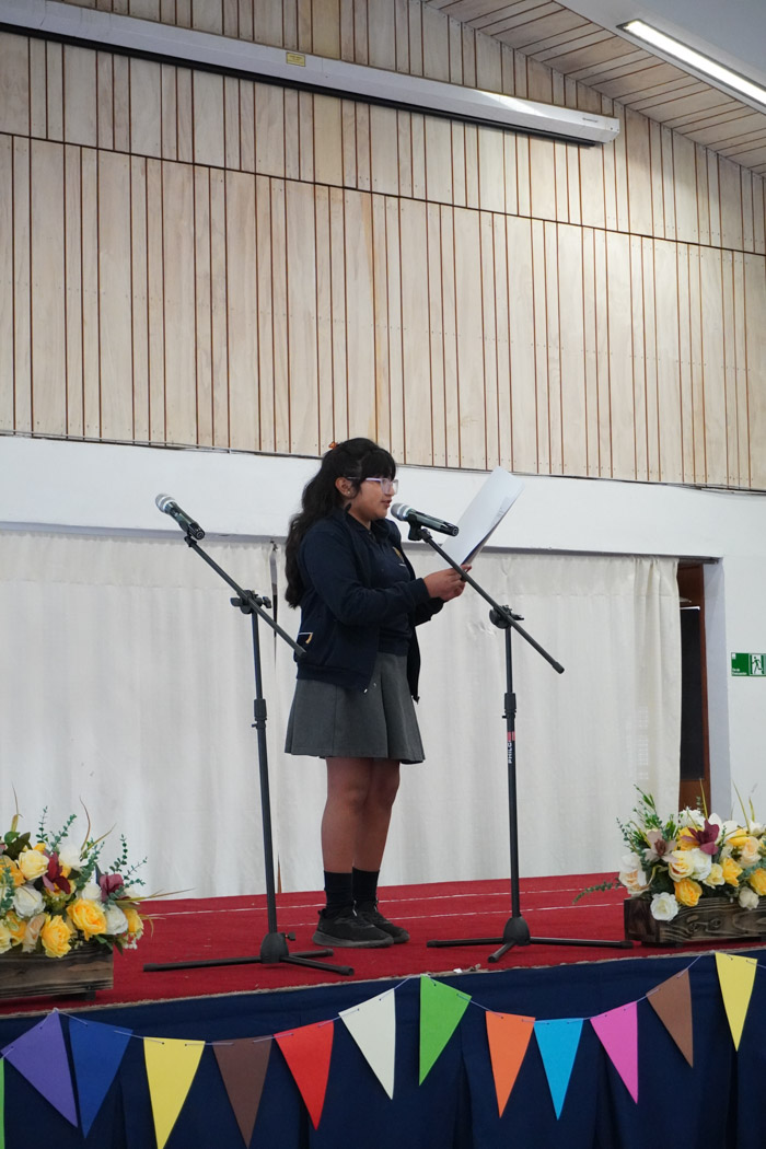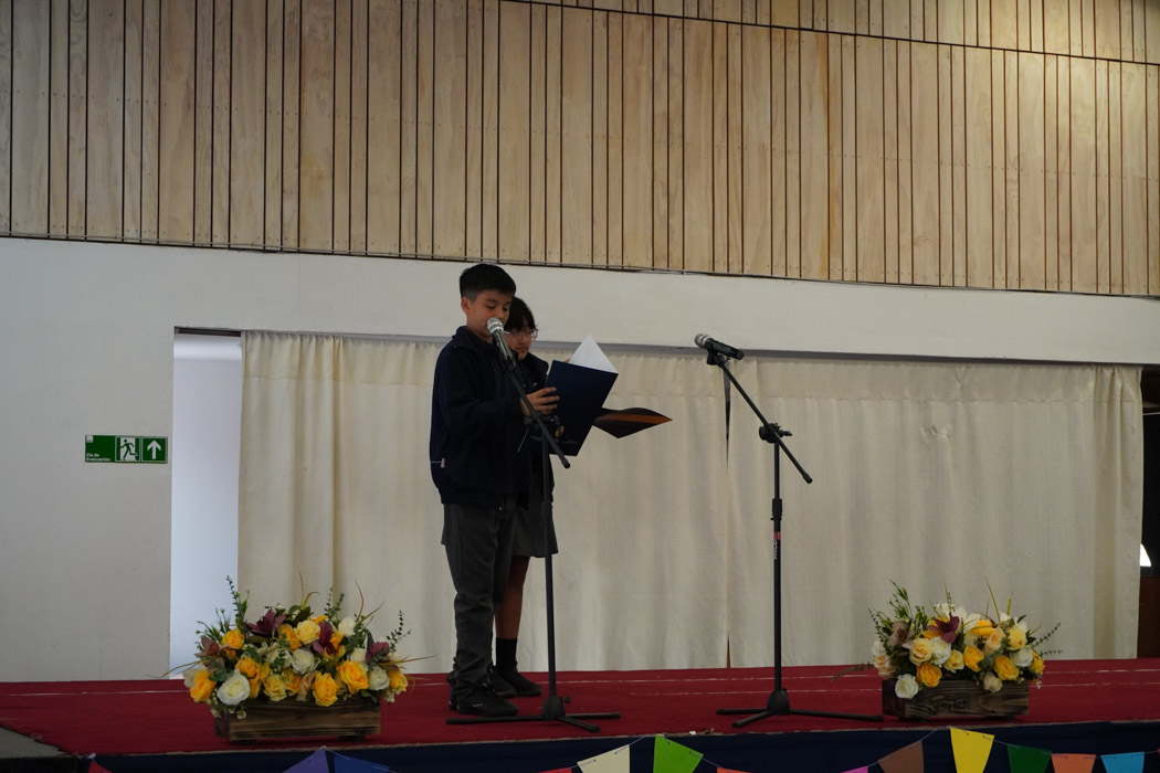 Guiados por los presentadores de la ceremonia, los estudiantes vivieron un programa lleno de poesía, cuentos tradicionales, personajes literarios y relatos chilenos, incluyendo: