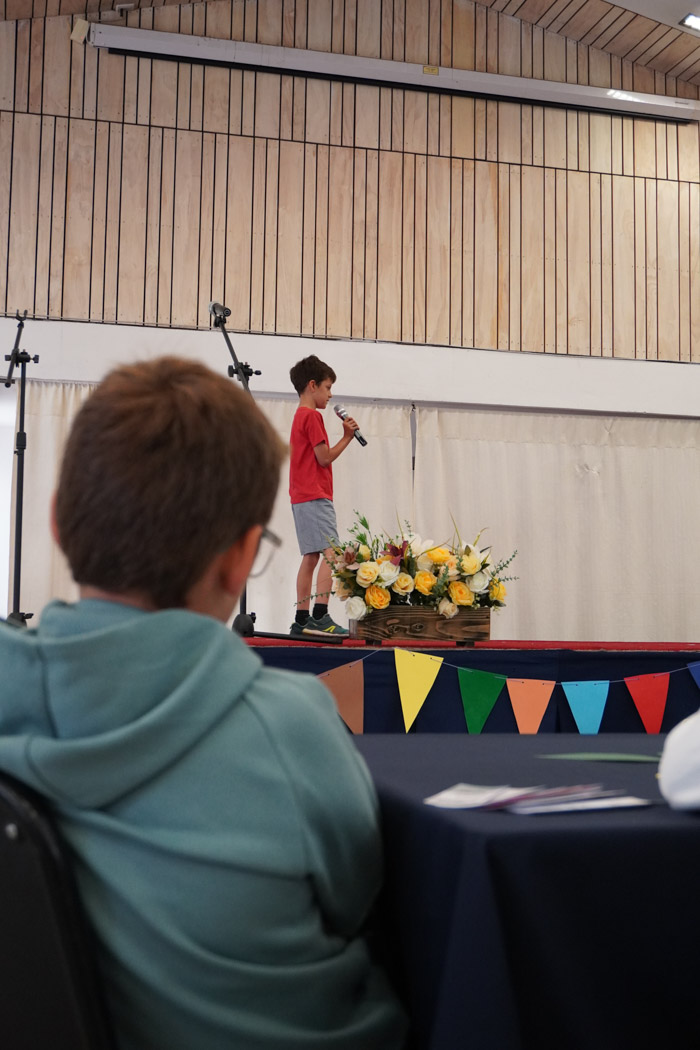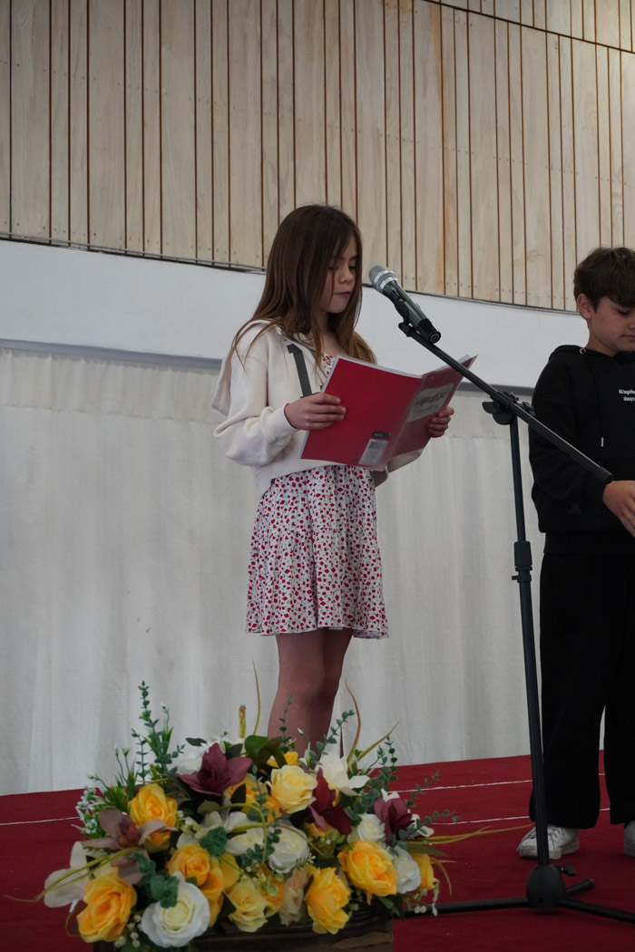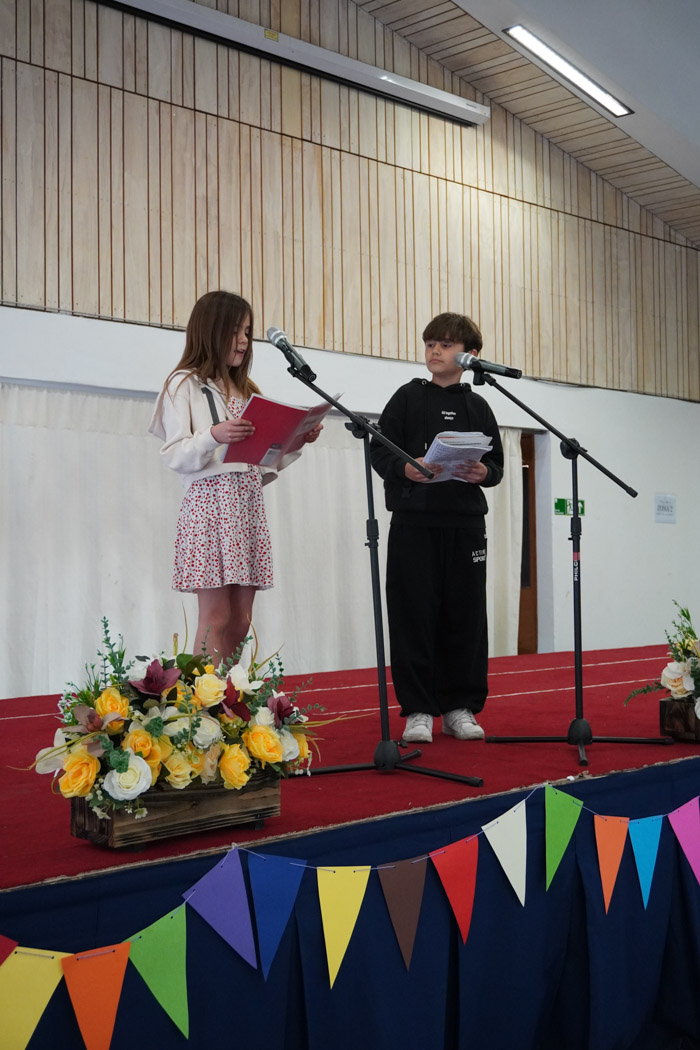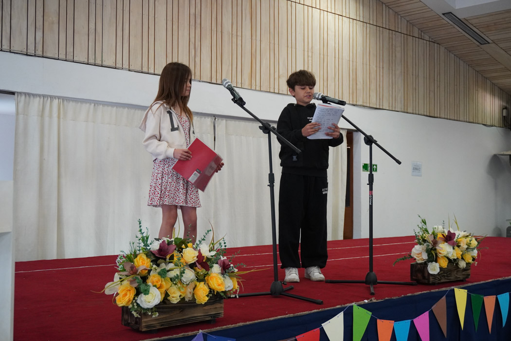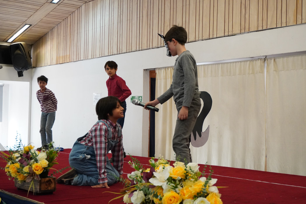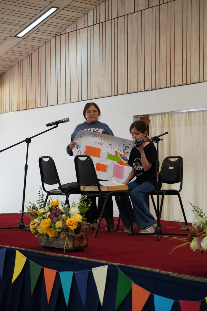 Guiados por los presentadores de la ceremonia, los estudiantes vivieron un programa lleno de poesía, cuentos tradicionales, personajes literarios y relatos chilenos, incluyendo: